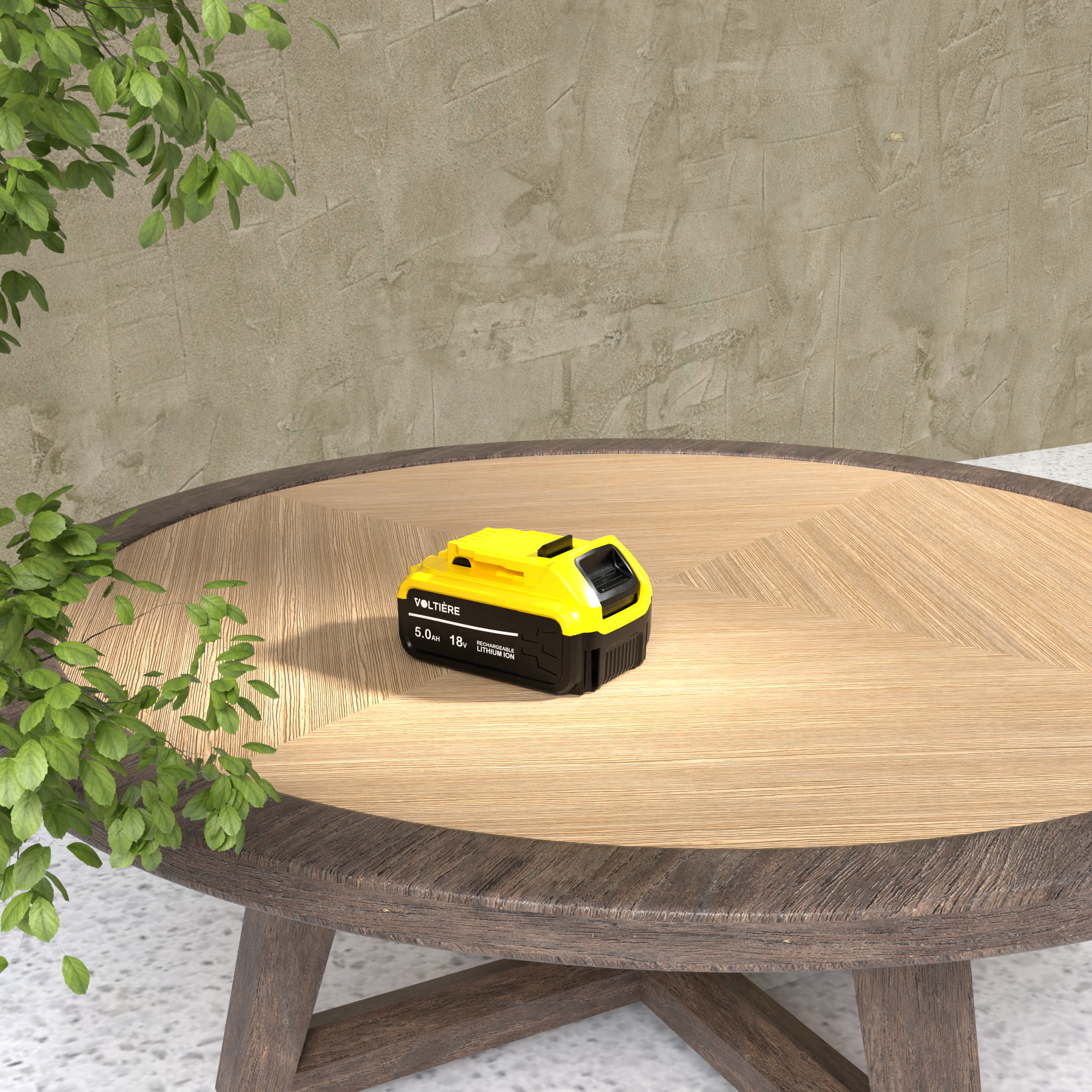 Met de Voltière 5.0Ah batterij ben je altijd verzekerd van een volle accu tijdens jouw klussen. Deze batterij is uitgerust met een slimme LED-indicator die je in real-time informeert over de resterende energieniveaus. Zo weet je altijd wanneer het tijd is om op te laden, zodat je geen kostbare tijd verliest. De indicator is eenvoudig af te lezen en bevindt zich handig aan de bovenkant van de batterij.
